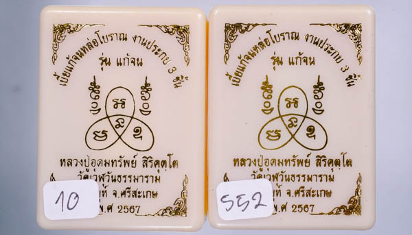 งานหล่อ ประกบ3 ชิ้น ข้างในมีผงงาช้างบด มวลสาร เขย่าดูมีมวลสาร สวยๆ หลวงปู่มหาศิลาร่วมเศก แบ่งเบาๆ ออฟชั่นเนื้อจะมีหลายๆ เนื้อหรือลงยาร่วมด้วย