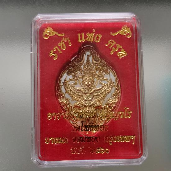 พญาครุฑฉลุ รุ่นราชาแห่งครุฑ ปี 60 พระอาจารย์วราห์วัดโพธิ์ทอง เนื้อกะไหล่ทองกล่องเดิมครบ |