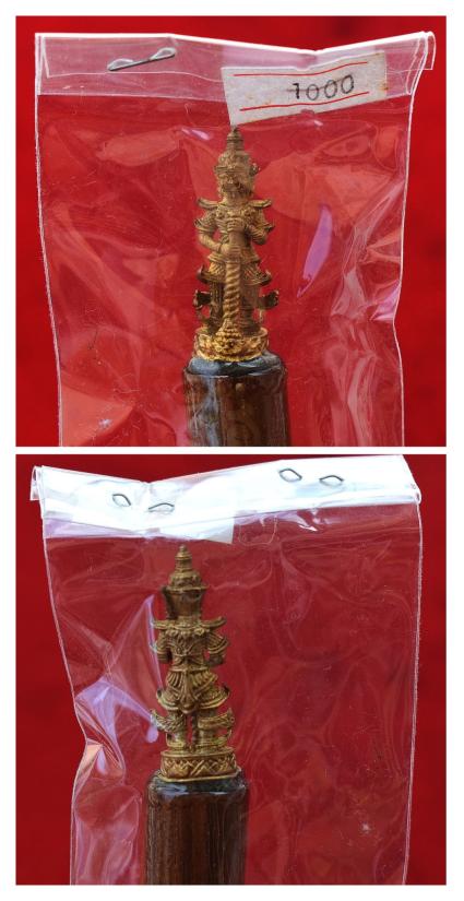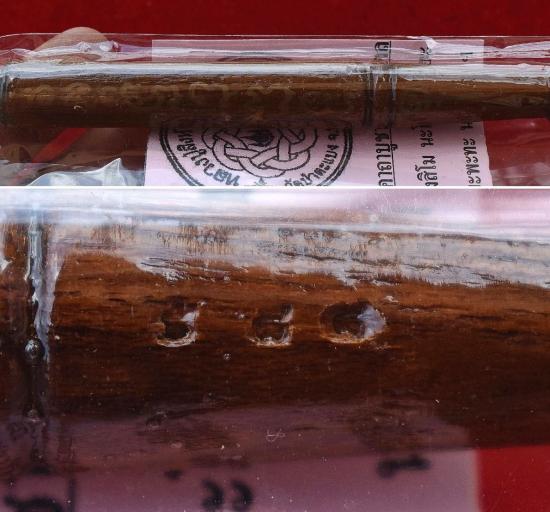 ไม้ครูสะกดวิญญาณ (ตำรับแรง) เลขสวย เบอร์ ๘๘ สร้างน้อยเพียง 90 ด้าม (หายากมากๆ) ปี 2558 หลวงปู่สิงห์ วัดบ้านป่าตะแบง จ.นครราชสีมา พร้อมซองเดิมจากวัด สภาพพระตามรูปที่ลงทุกประการ (ขนาดยาวประมาณ 17 ซม.)