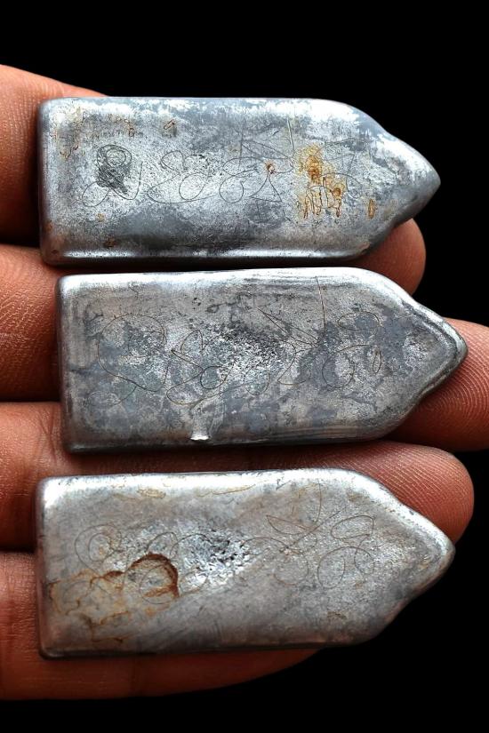 ชุด 3 องค์...พระพุทธชนะมาร เนื้อชินตะกั่วหล่อโบราณ (หลังจารยันต์หัวใจพระสีวลี) สร้างน้อย ปี 2556 หลวงปู่ชั้น วัดดอนสนวน จ.ชัยนาท พร้อมซองรูปเดิมจากวัด สภาพพระตามรูปทุกประการ (ขนาดประมาณ 4.9 x 2 ซม.)
