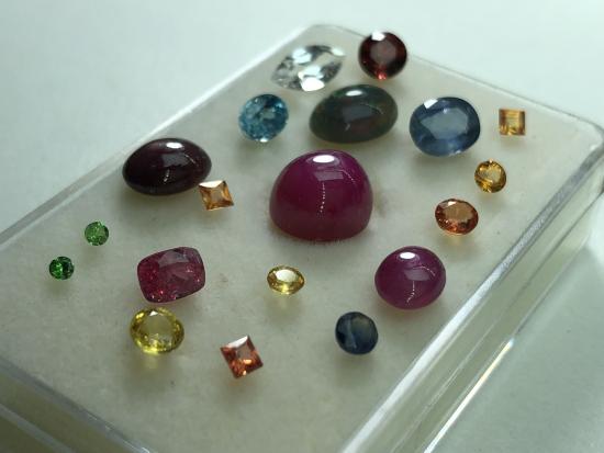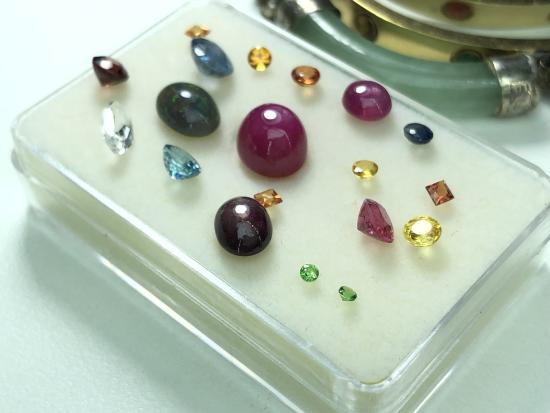 อัญมณีแกะจากสินหลุดจำนำ เพทาย สปิเนล บุษราคัม ไพลิน โทแพส แบล็คโอปอล สปิเนล โกเมนแดง โกเมนเขียว ไคยาไนซ์ รวม 13.5 กะรัต |