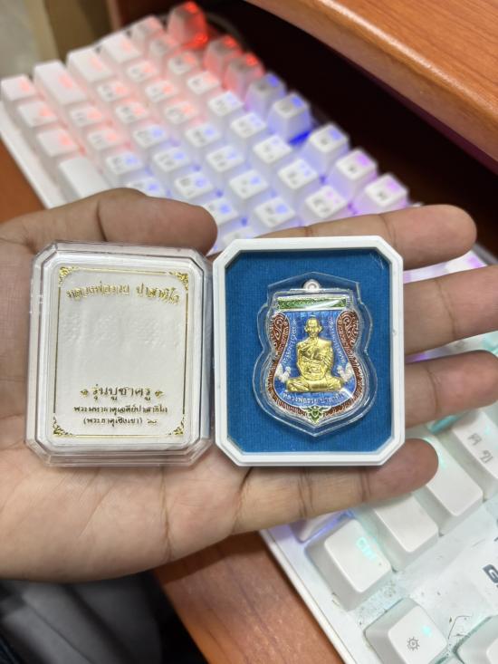 HOT!!! เหรียญบูชาครู ชุดกรรมการ เนื้อเงินหน้าทองคำ ลงยาสีฟ้า เลข 1789 หลวงพ่อรวย วัดตะโก เคาะเดียวแดง