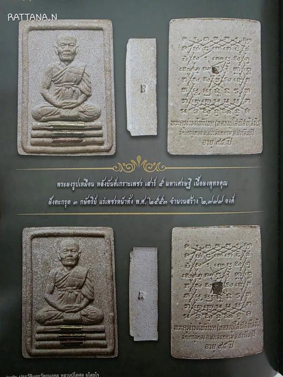 ซึ่งพระผงรูปเหมือนหลังยันต์เกราะเพชรรุ่นนี้หลวงปู่ได้อธิษฐานจิตปลุกเสกเดี่ยวถึง 2 พิธีใหญ่ด้วยกันคือ 1.พิธีรุ่นโสฬสมหามงคล ไตรมาส 52 พิธีรุ่นเสาร์ 5 มหาเศรษฐี ก่อนนำมาแจกให้กับศิษย์ที่เดินทางมาร่วมพิธีสรงน้ำแสดงมุทิตาจิตในวาระครบ 8 รอบ 96 ปีและฉลองพระใหญ่ เมื่อวันที่ 23 พฤษภาคม 2553 |