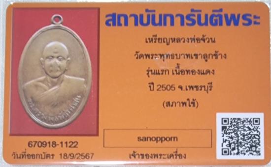 เหรียญหลวงพ่อจ้วน วัดพระพุทธบาทเขาลูกช้าง จ.เพชรบุรี รุ่นแรก ปี 2505 เนื้อทองแดง