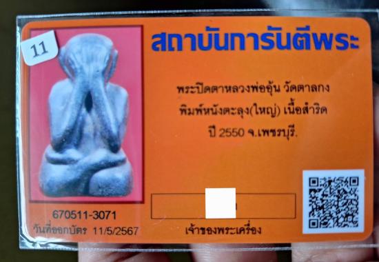 พระปิดตาหนังตะลุง (พิมพ์ใหญ่) เนื้อสัมฤทธิ์ หลวงพ่ออุ้น วัดตาลกง ตอกโค๊ต ใต้ฐาน ปี 2550 |