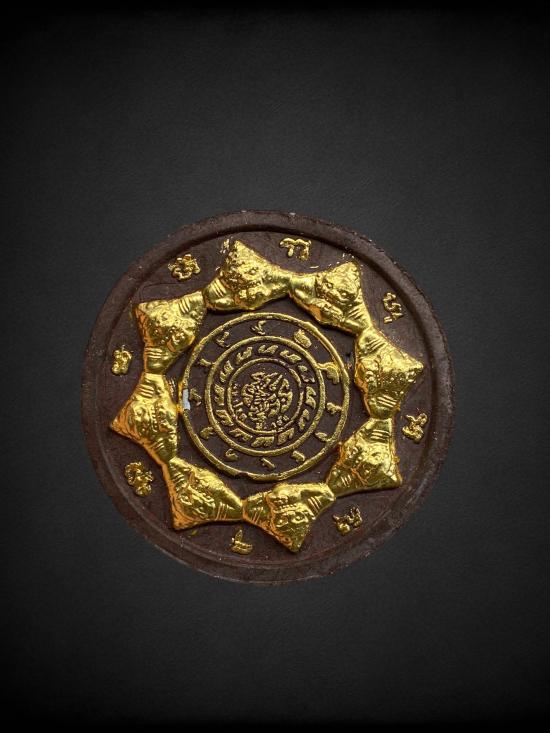 ด้านหลัง: ยันต์มหาโชค มหาชัย ล้อมรอบด้วยหัวพญานาค 8 เศียรปิดทองงามตา