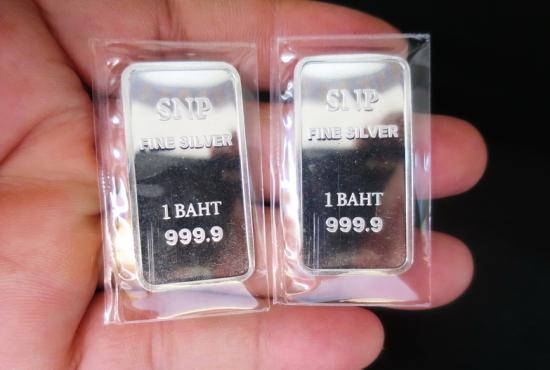 เงินแท่ง 999.9% ขนาด 1 บาทจำนวน 2 แท่ง หรือ FINE SILVER 999.9% น้ำหนักรวม 2 บาท ใหม่ๆเลยครับ |