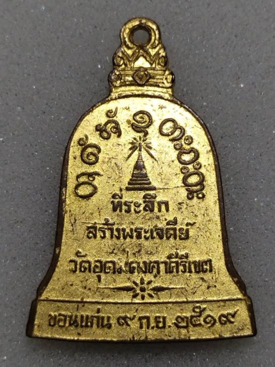 เหรียญระฆัง ที่ระลึกสร้างเจดีย์ปี19 หลวงพ่อผาง วัดอุดมคงคาคีรีเขต จ.ขอนแก่น เนื้อกะไหล่ทอง.....วัดใจเคาะเดียว