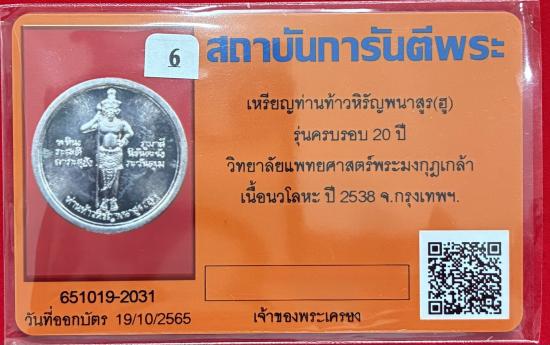 เหรียญท่านท้าวหิรัญพนาสูร(ฮู) รุ่นครบรอบ 20 ปี วิทยาลัยแพทยศาสตร์พระมงกุฎเกล้า ปี 2538 เนื้อนวะ กล่องเดิม พร้อมบัตรรับรองพระแท้ |
