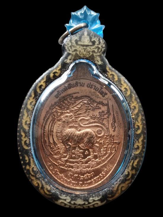 เหรียญพยัคฆ์พันล้าน ปราบไพรี หลวงพ่อพัฒน์ วัดห้วยด้วน พร้อมเลี่ยมกรอบเลเซอร์