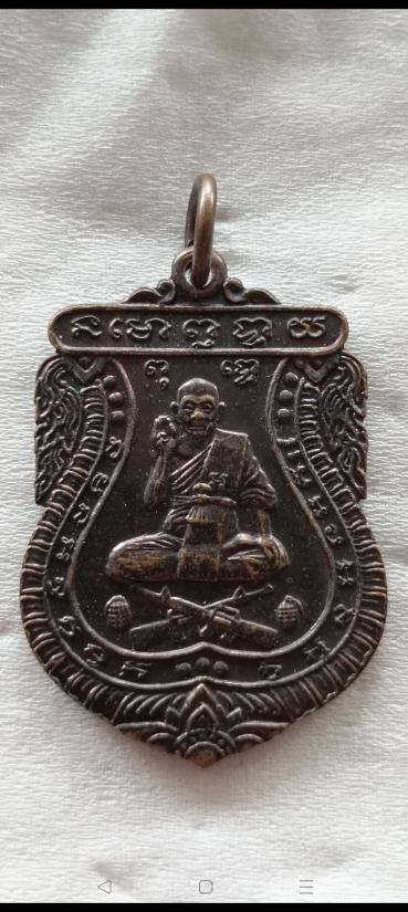 เหรียญปืนไขว้ หลวงพ่อพุฒ วัดกลางบางพระ จ.นครปฐม เนื้อทองแดงรมดำ ปี 2533 |