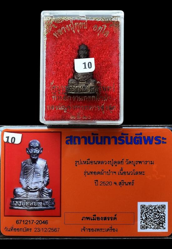 *** วัดใจ 300 แดง *** ( 10 ) รูปเหมือนหลวงปู่ดูลย์ วัดบูรพาราม เนื้อนวโลหะ ที่ระลึกงานทอดผ้าป่ากองบัญชาการทหารสูงสุด ปี 2520 จ.สุรินทร์ มีกล่องเดิม + บัตรรับรองพระแท้การันตีพระ