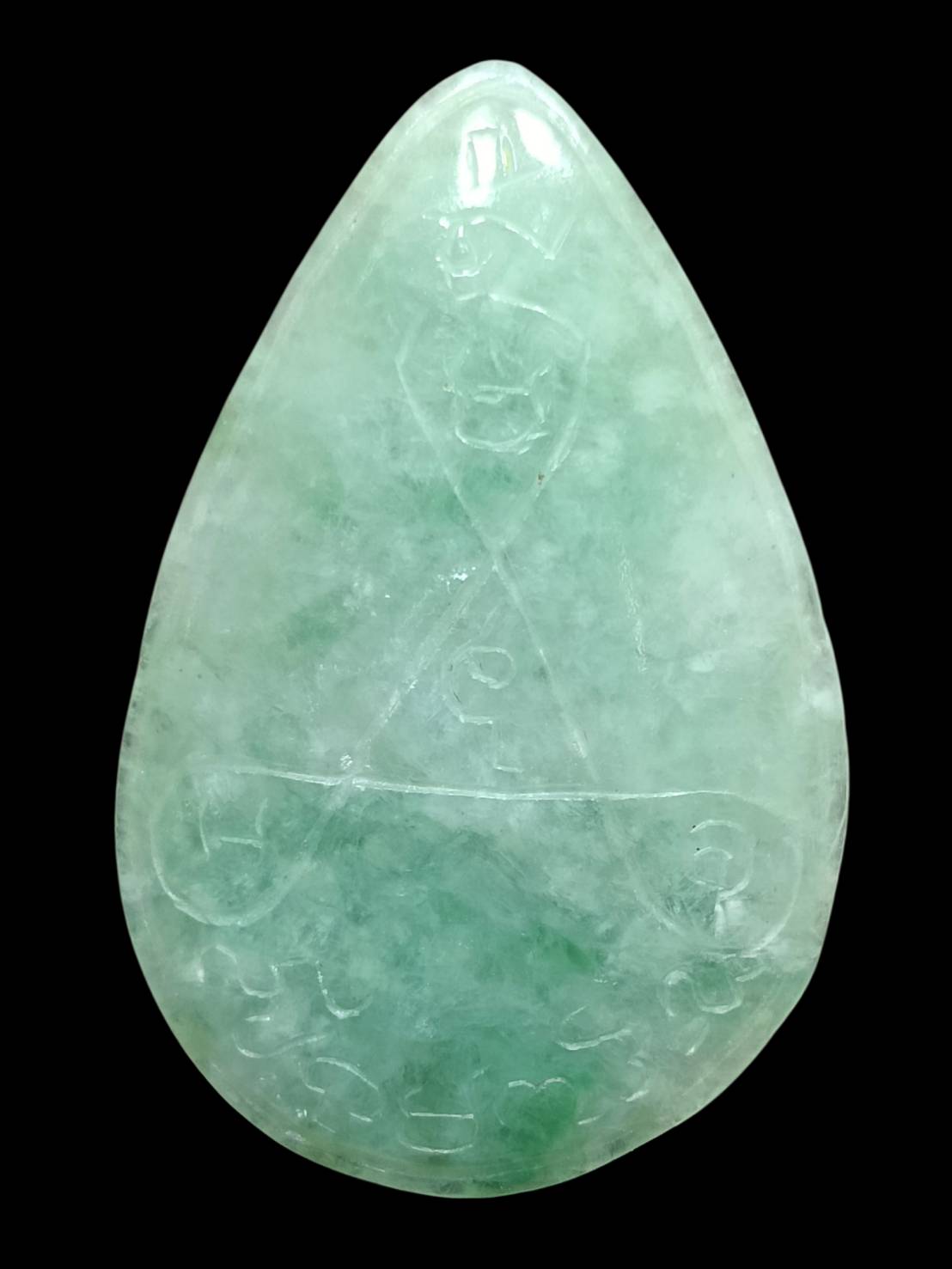 หินหยกแกะ พิมกลีบบัวหลังยันต์ไม่ทราบที่คับผมโดยรวมขอบรรยายด้วยภาพตรงตามรูปคับผม |