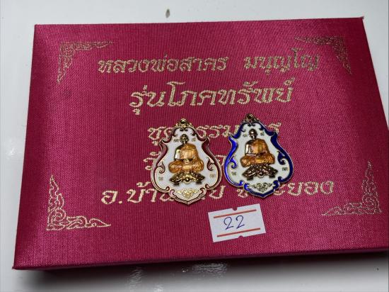แยกชุดกรรม เลข๒๒ ผู้ชนะรับพระ 2 องค์ เหรียญโภคทรัพย์ ลพ สาคร ปี 2552 เนื้อกะไหล่ทอง ลงยาแดง+กะไหล่นาค ลงยาน้ำเงิน หายากมากเพราะสร้างไว้ในเฉพาะในชุดกรรมการที่มีเพียง 300 เท่านั้น เลข 22 มีเพียง 1 เดียว |