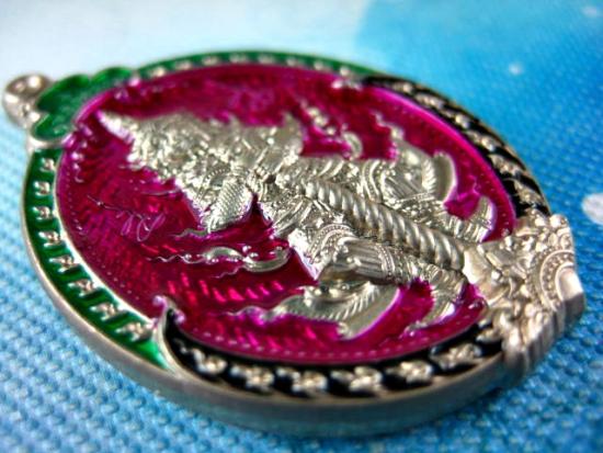 เหรียญท้าวเวสสุวรรณ (เหนือดวง-พลิกดวง) เนื้ออัลปาก้าลงยาชมพู อาจารย์โชติ วัดพุทไธศวรรษ ปี 2565 หมายเลข ๑๖๑๙ กล่องเดิม |