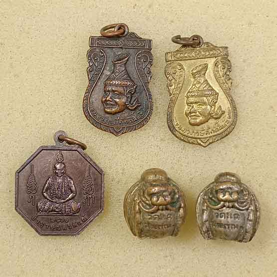 เหรียญมหาฤาษีศักดิ์สิทธิ์ พ่อแก่หลังบรมครูหมอชีวกโกมารทัต 2 เหรียญ +เหรียญปู่ฤาษีวีระตะเทพ นาคา เทวาศิลป์ กาญจนบุรี +ลูกอมต่อเงิน-ทอง วัดแค สุพรรณฯ 2 ลูก +ปลาตะเพียนเงินสะพัดทองร่ำรวย วัดป่าพุทธญาณ |