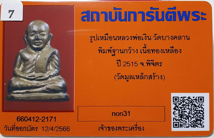 สวยแชมป์ครับ/// หลวงพ่อเงินวัดมูลเหล็ก ฐานกว้าง ปี 15 เนื้อทองเหลือง +บัตร**2171** |