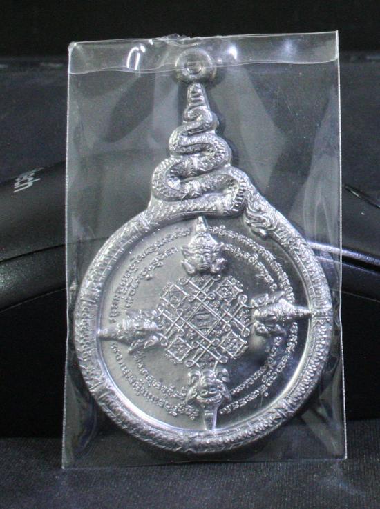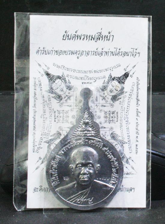 ด้านหน้าเหรียญได้นำพระยันต์ของพระพรหมที่เป็นตำรับเก่าแก่เป็นผูกกระดาษฝาง ที่ตกทอดกันมา ในตำราบอกบรรยายไว้มากมายสรุปได้อย่างนี้ว่า "ยันต์นี้ให้อธิษฐานตามแต่เธอจะปรารถนา จะคิดการสิ่งใด ก็สำเร็จเลิศเลอ ประเสริฐ ยิ่งนักแล" มีพญานาคขดล้อมยันต์พระพรหม ตวัดหางเป็นเลข ๙ เป็นสัญลักษณ์การเป่ายันต์พรหมครั้งที่ 9 ของหลวงพ่อ