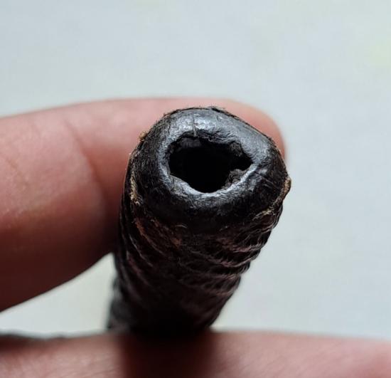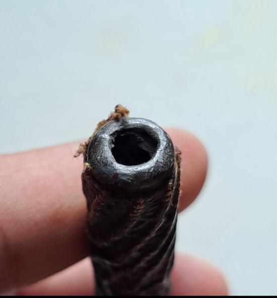 ** วัดใจเคาะเดียวแดงไปเลย ** ตะกรุดถักเชือกจุ่มรัก เนื้อตะกั่ว เก่ามีอายุ ไม่ทราบที่สร้าง ขนาด 4 นิ้ว |