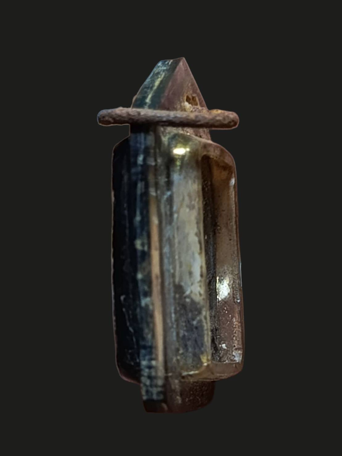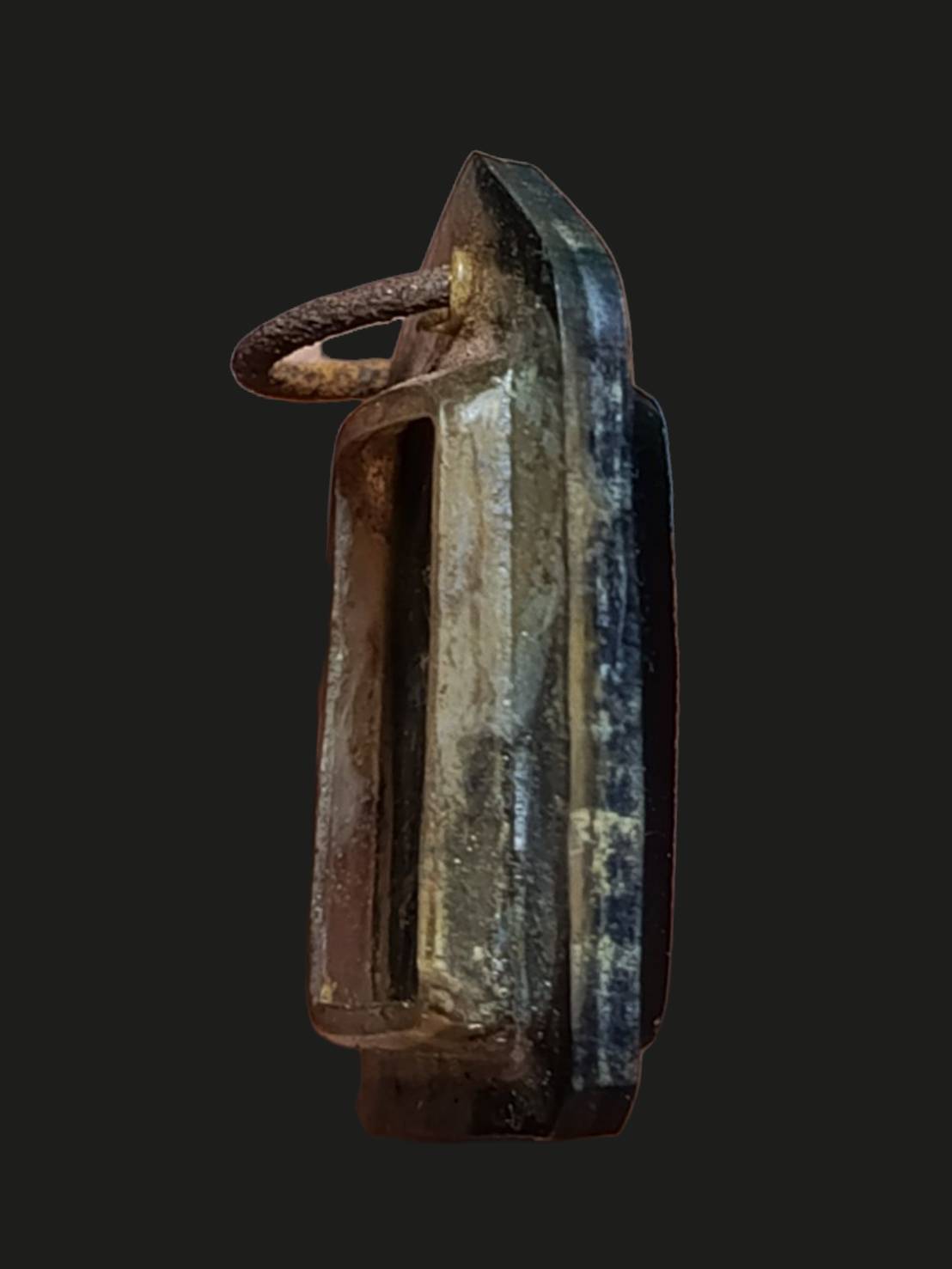 เหรียญหล่อเนื้อโลหะ เลี่ยมกรอบพลาสติกสีดำห่วงสนิมเก่าๆ เคาะเดียวแดง |
