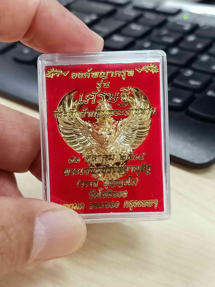 วัดใจ 150 ลอยองค์พญาครุฑ รุ่นเศรษฐี กฐินพระราชทาน หลวงพ่อวราห์ วัดโพธิทอง บางมด กรุงเทพ กะไหล่ทอง กล่องเดิม |