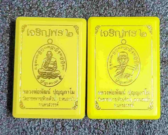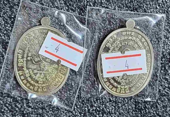 เคาะเดียวแดง เหรียญหลวงพ่อพัฒน์ รุ่นเจริญพร 2 เนื้ออัลปาก้า หน้ากากนว รวม 2 เหรียญ |
