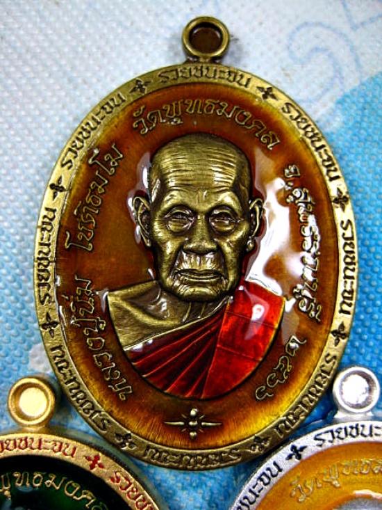 เหรียญรุ่นรวยชนะจน หลวงปู่นิ่ม โชติธัมโม วัดพุทธมงคล จ.สุพรรณบุรี 3 เหรียญ 3 เนื้อ ลงยา (---A15---) |