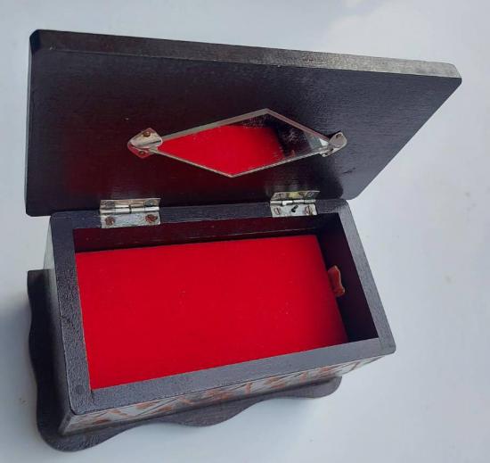 ขนาด 6 X 3.5 สูง 3.5 นิ้ว งานเก่าน่าสะสม สามารถใส่อุปกรณ์พระเครื่องได้