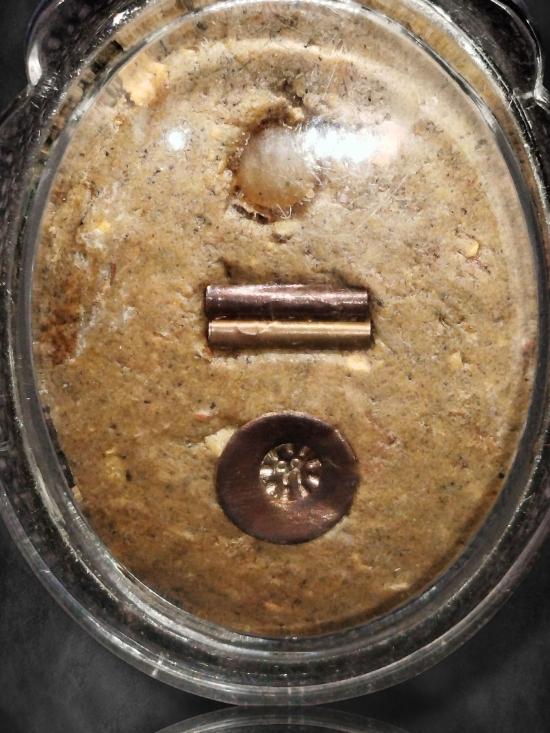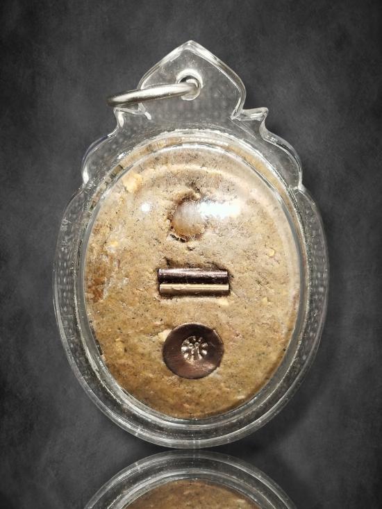 ล็อกเก็ต ฉากฟ้า รุ่น " ร.ส. 2000 " ปี 2543 อุดมวลสาร 9 ชนิด ฝังตะกรุดเงินคู่ หลวงปู่หงษ์ สุสานทุ่งมน สุรินทร์