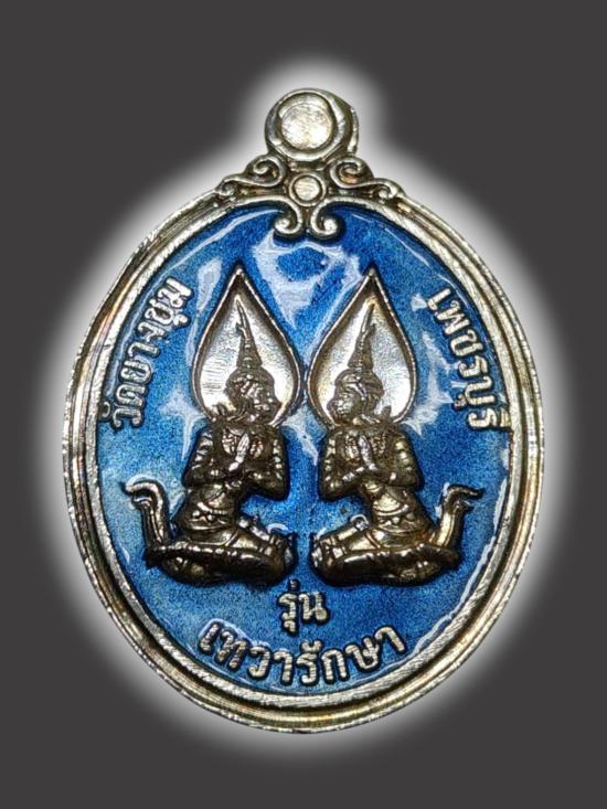 A3166.เหรียญเทวารักษา วัดยางชุม หลวงพ่อเงิน กะไหล่เงินลงยา สวยๆ เคาะเดียวเเดง |