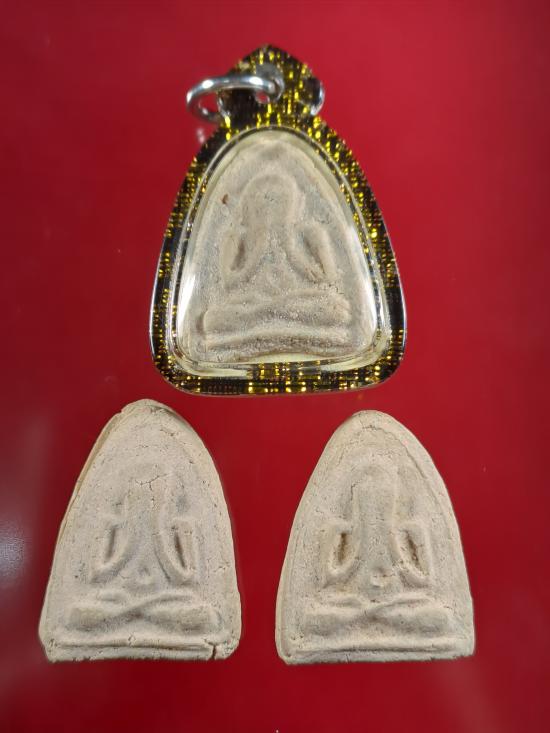 พระปิดตา หลังกด " มุ่ย " หลวงพ่อมุ่ย วัดดอนไร่ ออก วัดหนองบัวทอง 3 องค์ กล่องเดิม ๆ |