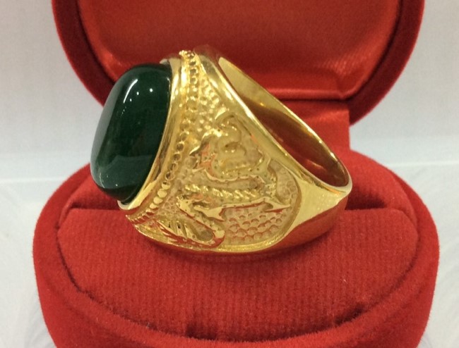 เทขาดทุน++แหวนชุบทอง18k ยิงเลเซอร์ แหวนทองเกลี้ยงมหามงคลเสริมบารมี หัวพลอยโมรา เม็ดนูนสวยมาก |