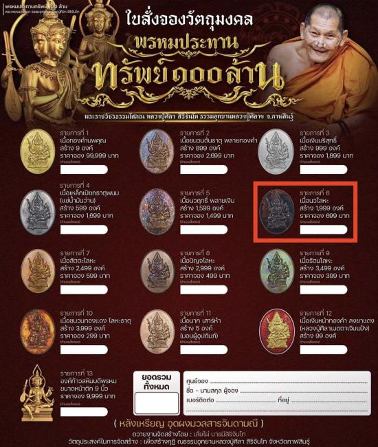 จำนวนสร้าง 1,999 องค์ (ราคาจอง 699บาท)