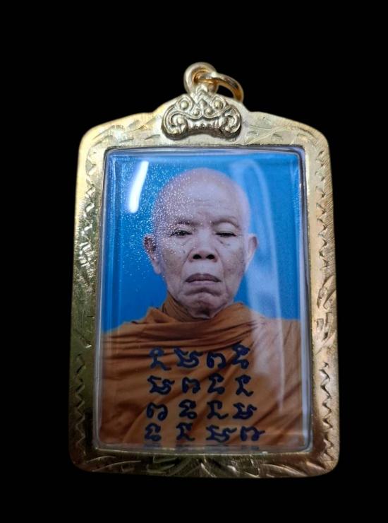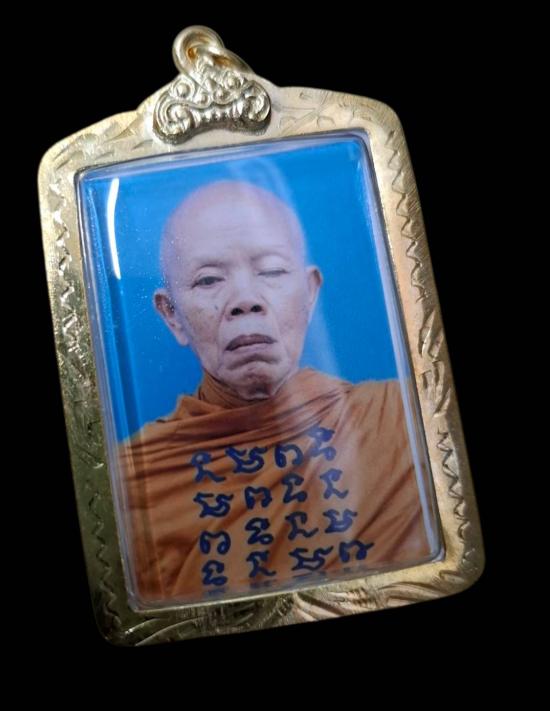 รูปถ่ายถาพสีหลวงพ่อคูณ วัดบ้านไร่ จ.นครราชสีมา ปี 2557 หลังตรายางวัดบ้านไร่+ติดจีวรเกษา ( พร้อมเลี่ยมกรอบไมค่อนสีทอง )