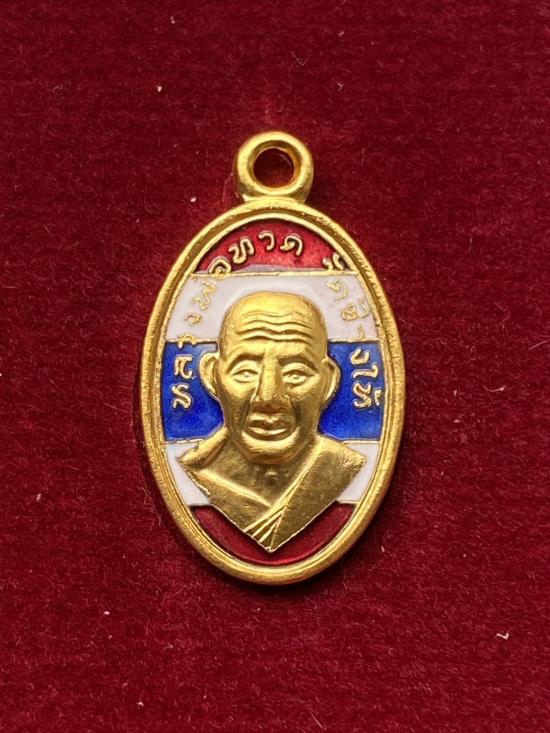 เม็ดแตงใบขี้เหล็กหลวงปู่ทวดหลังอาจารย์ทิม รุ่น102ปี เนื้อ ทองแดงนอกชุบทองลงยาลงยาธงชาติ |