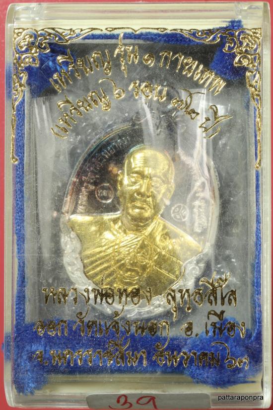 เหรียญหลวงพ่อทอง รุ่นกายเทพ ปี 2563 เนื้อเนื้อเงินหน้ากากทองคำ หมายเลข 39