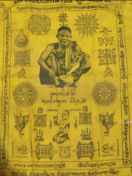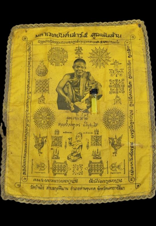 ผ้ายันต์ มหาเวทยันต์ เสาร์ ๕ คูณพันล้าน หลวงพ่อคูณ วัดบ้านไร่ จ.นครราชสีมา |