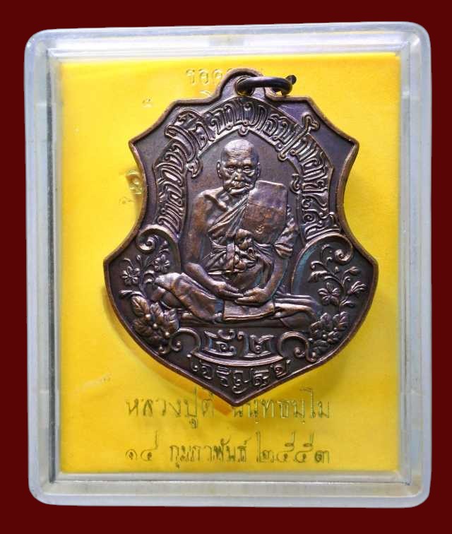เหรียญหลวงปู่ตี๋ วัดท่ามะกรูด จ.สุพรรณบุรี รุ่นเจริญสุข เนื้อทองแดงรมดำ ปี ๕๓ เหรียญที่สวยงามด้วยลายเส้นยันต์ และเข้มขลังด้วยพุทธคุณ พร้อมกล่องเดิม |
