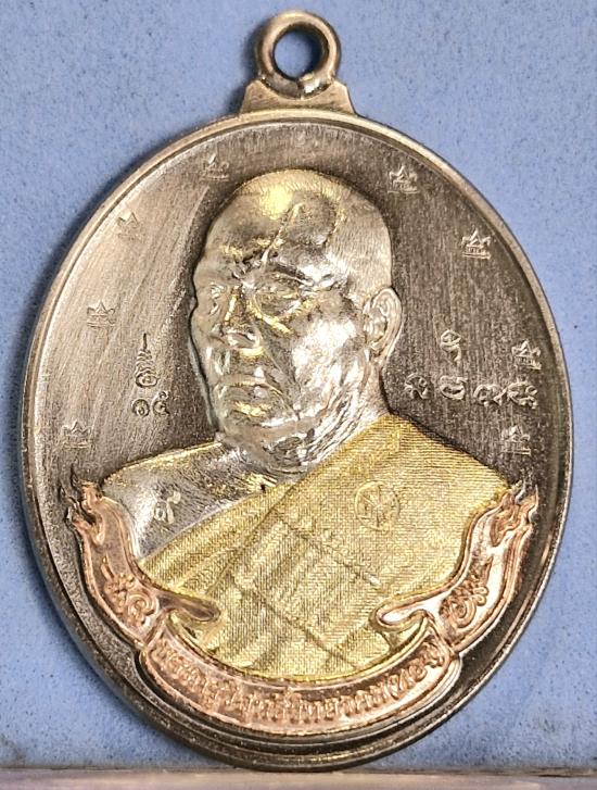 เหรียญรูปไข่ เนื้อเงินซาติน พ่นทรายสามกษัตริย์ ห่วงเชื่อม หลวงพ่อทองวัดบ้านไร่