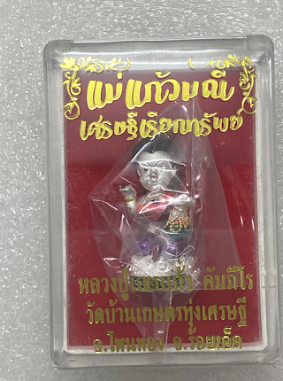 แม่แก้วมณีเศรษฐีเรียกทรัพย์ สัมฤทธิ์ชุบเงินลงยา หลวงปู่เณรแก้ว วัดบ้านเกษตรทุ่งเศรษฐี จ.ร้อยเอ็ด สูง3.5ซม กล่องเดิม |