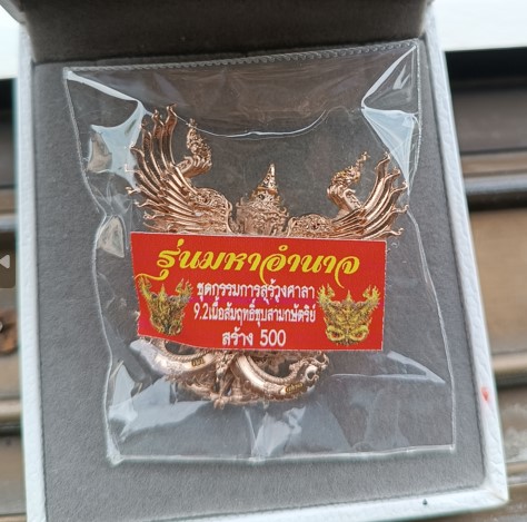 พญาครุฑ รุ่นมหาอำนาจ รุ่นแรก ร่วมสร้างศาลา 100ปี หลวงพ่อพัฒน์ วัดห้วยด้วน นครสวรรค์ ปี 2563 เนื้อสัมฤทธิ์ชุบ 3 กษัตริย์ หมายเลข 321 เลขสวยๆ ขนาด สูง 3.5 cm. กว้าง 4 cm พร้อมกล่องเดิมครับ |