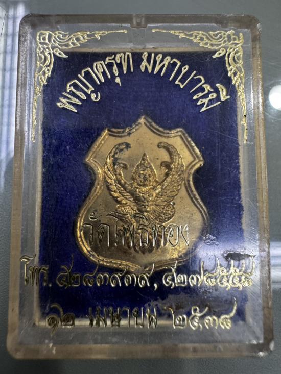 เหรียญอาร์มพญาครุฑ รุ่นมหาบารมี เนื้อกะไหล่ทอง ปี 2538 ตอกโค๊ตใบโพธิ์ กล่องเดิม |