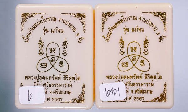 งานหล่อ ประกบ3 ชิ้น ข้างในมีผงงาช้างบด มวลสาร เขย่าดูมีมวลสาร สวยๆ หลวงปู่มหาศิลาร่วมเศก แบ่งเบาๆ ออฟชั่นเนื้อจะมีหลายๆ เนื้อหรือลงยาร่วมด้วย