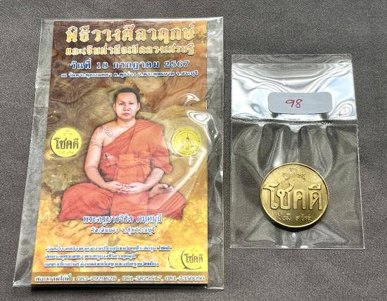 เหรียญ "โชคดี" วัดพระพุทธเมตตา พระครูบาวชิริล วัดเดิมบาง เมตตาเขียนยันต์ต้นแบบเหรียญ และอธิษฐานจิตเดี่ยว รับโชคสมชื่อเหรียญ เลข 98 |