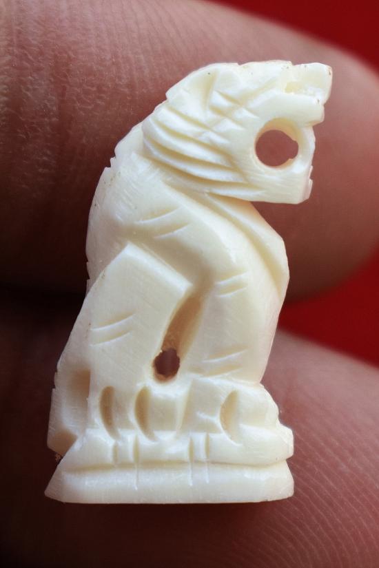 พญาเสือเจ้าพยัคฆ์ตัวจ่าฝูง (มหาอำนาจ มหาปราบ) เนื้อกระดูกแกะ ใต้ฐานหลวงปู่จารยันต์กำกับไว้ทุกตัว สร้าง 189 ตัว ปี 2551 หลวงปู่เฉลิม วัดบุญนาคประชาสรรค์ จ.สมุทรสงคราม พร้อมซองรูปใบฝอยเดิมจากวัด สภาพพระตามรูปที่ลงทุกประการ (ขนาดประมาณ 2.4 x 1.2 ซม.)