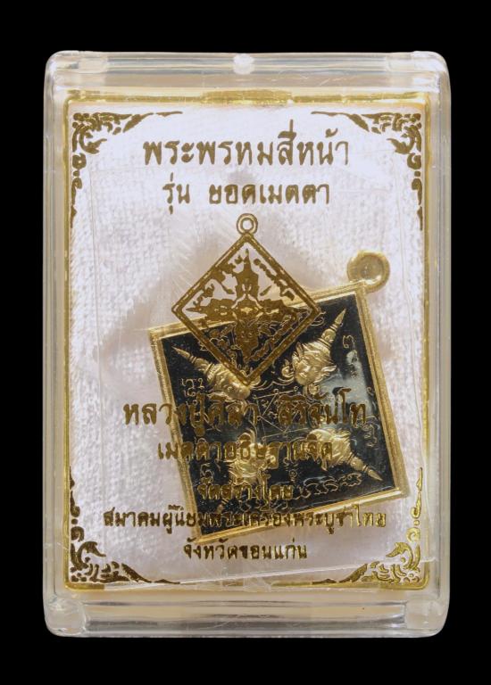 "วัดใจ แดง150" เหรียญพระพรหมสี่หน้า รุ่นยอดเมตตา หลวงปู่ศิลา สิริจันโท เนื้อทองแดงชุบทองลงยาสีดำ หมายเลข ๒๐๓ |