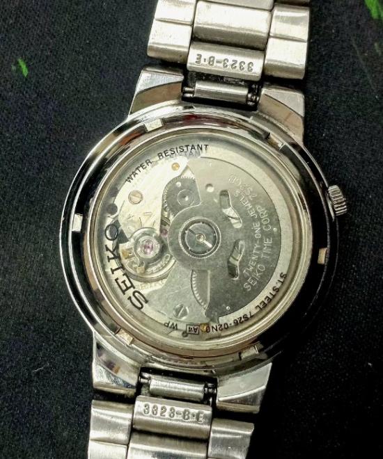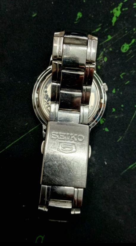 หลังเปลือย Seiko 5 Automatic 7s26B 21jewels 38 มม.รวมเม็ด หนา 12 มม.โดยประมาณ สาย12ข้อใหญ่ เดินปกติวันที่ปกติเปลี่ยนเร็วได้พร้อมใช้ครับ