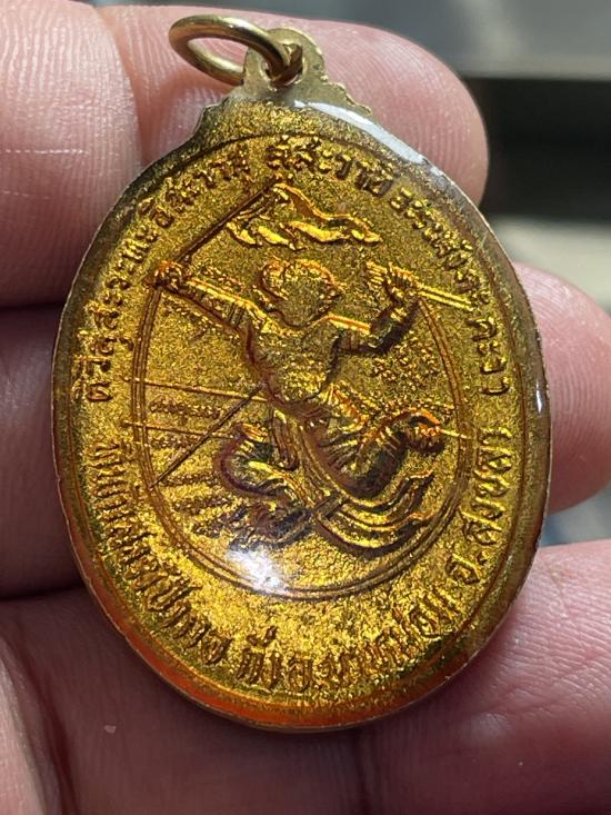 วัดใจเคาะแรก100.. เหรียญรุ่นแรก พ่อท่านทอง หลังหนุมานเชิญธง วัดป่ากอ อ.นาหม่อม จ.สงขลา เนื้อกะไหล่ทองลงยาสีแดง |