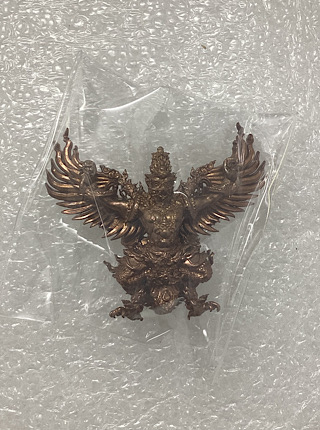 เคาะเดียวแดง 100 พญาครุฑทรงฤทธิ์ ชนะมาร วัดครุฑธาราม พระนครศรีอยุธยา พิมพ์เล็ก สูง 3.2 ซ.ม. เนื้อทองแดงขัดยาดำ (แจกในพิธี) |