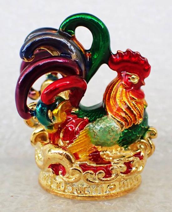 $วัดใจค่ะ ไก่ฟ้าพญาเลี้ยง รุ่น ไก่ฟ้ามหาเศรษฐี หลวงตาน้อย สำนักสงฆ์ป่าปวงตึก จ.ศรีสะเกษ เข้าพิธีปลุกเสกที่ธรรมอุทยาน โดย หลวงปู่มหาศิลา สูง 1.8 CM. เนื้อสัมฤทธิ์ชุบทองลงยาราชาวดี เลข ๑๙๘ กล่องเดิมค่ะ$ |